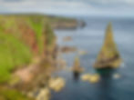 First sight of the Stacks of Duncansby from atop the wonderfully named Hill of Crogodale.